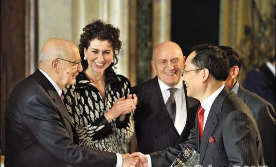 意大利總統(tǒng)納波利塔諾為中聯(lián)重科詹純新頒發(fā)“萊昂納多國際獎(jiǎng)”,這是中國企業(yè)家首次獲該國際獎(jiǎng)項(xiàng)。