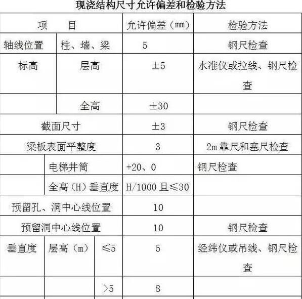 現(xiàn)澆結(jié)構(gòu)尺寸允許偏差和檢驗(yàn)方法