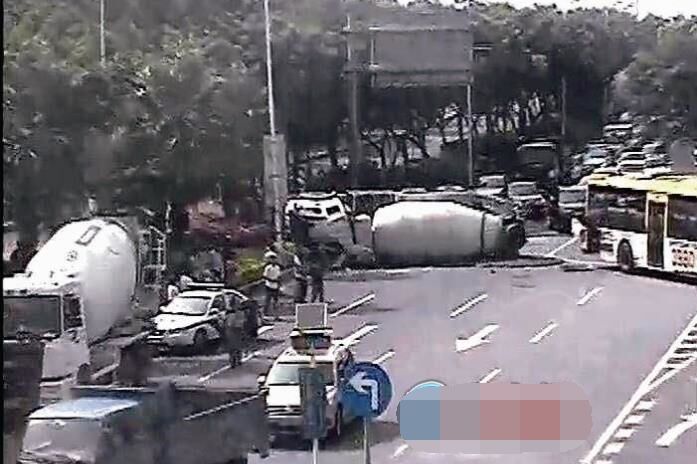 攪拌車(chē)撞擊后,可能猛打了方向盤(pán),突然失控,側(cè)翻在地,占了兩個(gè)車(chē)道,加上泥漿傾倒下來(lái),對(duì)交通影響很大。
