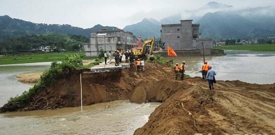 6月19日凌晨3時至20日8時,湖北黃岡地區(qū)發(fā)生百年不遇特大暴雨,并引發(fā)山體滑坡,導(dǎo)致多處道路損毀,其中蘄春縣張榜鎮(zhèn)災(zāi)情最重。武警交通六支隊出動兵力100余人,動力舟橋、沖鋒舟和挖掘機等大型機車裝備近30臺(套),迅速展開救援工作。7月5日10時,在蘄春縣下蘄線牛皮坳段,一處550米長的堤岸上,11臺挖掘機一字排開,揮舞著大臂,將一鏟鏟砂石放下、夯實,對大堤進行加高。公路上,大型運輸車來回穿梭。附近的三處取土點,另外6臺挖掘機正在奮力勞作。從7月4日6時至7月6日18時,17臺挖掘機不間斷勞作,550米長、5米寬的堤岸,“長高”了近2米。