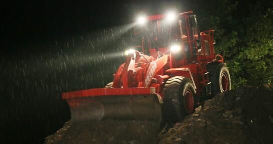 “1號裝載機注意,迅速對前方石料進行前推,一次合攏堤壩”。7月4日凌晨5時,在大雨中,隨著指揮旗抬起,麻城市龍池橋宋家河村固道長43米潰壩,經(jīng)過武警交通六支隊10名官兵21小時連續(xù)奮戰(zhàn),被成功封堵合攏?!?臺裝備配備3名官兵,每臺裝備1名安全員,2名操作手,確保操作手能夠輪換,做到人歇機不歇?!蓖ㄟ^科學(xué)編組,在狹窄的壩頂,水上挖掘機、裝載機晝夜不停展開搶險。在麻城抗洪搶險戰(zhàn)斗中,針對潰口處河堤道路狹窄,運輸石料困難,搶險官兵迅速制定搶險方案,采取對向推進,兩側(cè)供料,挖推結(jié)合的戰(zhàn)法堵口。根據(jù)現(xiàn)場實際,在潰口左側(cè)配備1臺裝載機、1臺水上挖掘機,在右側(cè)配備1臺挖掘機,地方運料車配合,確保發(fā)揮裝備最大效能。推料、倒料、拍實、碾壓……,燈光照耀下,裝載機操作手蘇鵬與安全員密切配合,迅速在潰口上方完成一連串動作。10米、8米、2米,在一次次填筑推進下,潰口的長度越來越短,終于在凌晨5時11分,堤壩完全合攏,成功排除險情。