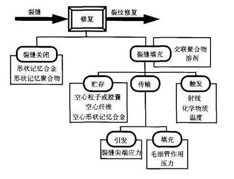 仿生自愈合法是一種新的裂縫處理方法,它模仿生物組織對受創(chuàng)傷部位自動分泌某種物質,而使創(chuàng)傷部位得到愈合的機能,在混凝土的傳統(tǒng)組分中加入某些特殊組分(如含粘結劑的液芯纖維或膠囊),在混凝土內(nèi)部形成智能型仿生自愈合神經(jīng)網(wǎng)絡系統(tǒng),當混凝土出現(xiàn)裂縫時分泌出部分液芯纖維可使裂縫重新愈合。