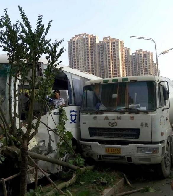 八月十七日,合肥市湖南路與南寧路附近,一輛攪拌車與運(yùn)送員工的班車相撞,造成至少20人受傷,2人傷勢較重。