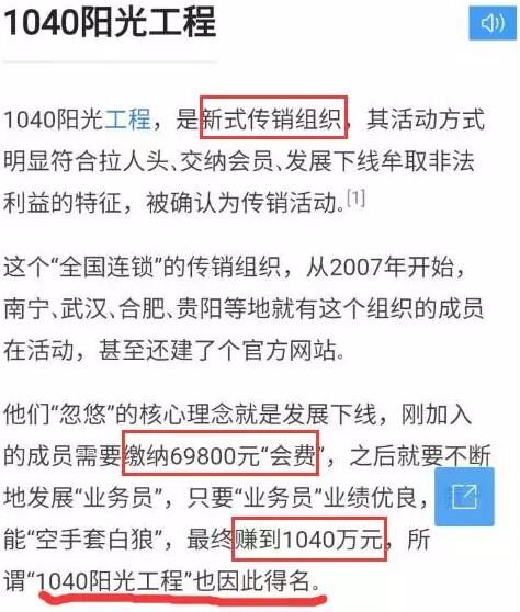 “1040陽光工程”為新型傳銷組織,新型傳銷特點如下: