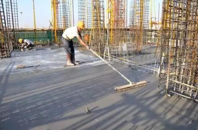 對于大面積樓板混凝土收面,為有效減少砼裂縫的發(fā)生,現(xiàn)澆板面混凝土在初凝后采用磨光機收面,做到機械化找平,在找平的表面再進行拉毛處理。
