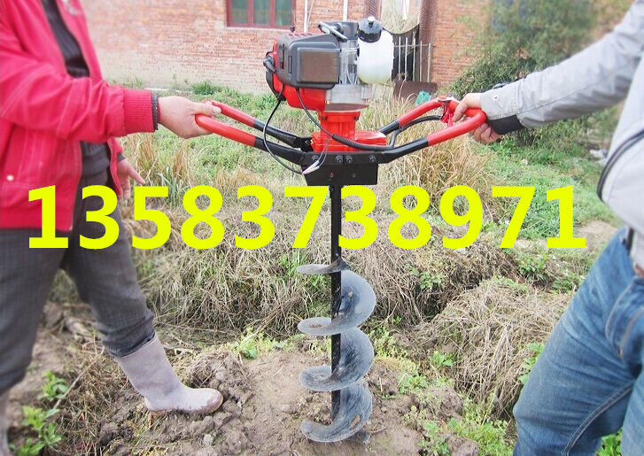 地鉆由小型通用汽油機(jī),齒輪箱及特殊設(shè)計(jì)的鉆具組成.適合在土地,凍土,冰層上打孔.廣泛用于園林,種植,植樹,物探,道路建設(shè)等領(lǐng)域  2.鉆頭采用錳鋼合成更加的堅(jiān)硬。對(duì)硬土質(zhì),超硬土質(zhì),粘土,凍土等都能工作。   3.地鉆可根據(jù)樹種,選配多種規(guī)格的鉆頭,以滿足用戶需要。 4.地鉆能夠讓人們從繁重的體力勞動(dòng)解放出來(lái),廣泛應(yīng)用于植樹造林,栽種果林、籬笆、及秋季給果樹施肥等。適合各種地形,效率高,便于攜帶及野外田地作業(yè)。   5.地鉆既可以單人操作,又可雙人操作,經(jīng)濟(jì)實(shí)用。   注意事項(xiàng):1.使用正品2T(二沖程)FC級(jí)機(jī)油,嚴(yán)禁使用4T(四沖程)機(jī)油。   2.嚴(yán)禁使用純汽油。   3.嚴(yán)格按251的比例兌油. 4.新機(jī)器不可高速使用,請(qǐng)低速磨合3小時(shí)。   5.嚴(yán)禁在高速的時(shí)候突然關(guān)停發(fā)動(dòng)機(jī),否則會(huì)使下次開機(jī)啟動(dòng)困難。   6.感覺機(jī)器震動(dòng)異常,請(qǐng)立即停機(jī)檢查,是否破損,松動(dòng),偏心。   7.嚴(yán)禁在有亂石堆的草地上使用。   8.鉆頭有嚴(yán)格的尺寸限制,嚴(yán)禁私自改裝或使用增大號(hào)鉆頭. 9.每工作一段時(shí)間清除火花塞、消音器積碳,清洗空氣濾清器,向齒輪箱加注黃油。   10.遇到問(wèn)題自己無(wú)法解決的,不要私自拆裝。   11.機(jī)器長(zhǎng)時(shí)間不用時(shí),應(yīng)該將剩余的燃油倒出,然后發(fā)動(dòng)機(jī)器將化油器內(nèi)的燃油全部燃燒干凈。   12.想讓機(jī)器運(yùn)轉(zhuǎn)更穩(wěn)定,壽命更長(zhǎng)請(qǐng)經(jīng)常保養(yǎng)。   安全事項(xiàng):   A.人身安全:嚴(yán)禁在室內(nèi)添加汽油,嚴(yán)防火災(zāi);機(jī)器運(yùn)行時(shí),嚴(yán)禁手腳靠近鉆頭;清理或檢查機(jī)器時(shí)必須停機(jī)。   B.機(jī)器安全:地鉆起動(dòng)前必須清理草坪上的雜物,確保機(jī)器安全運(yùn)轉(zhuǎn)。