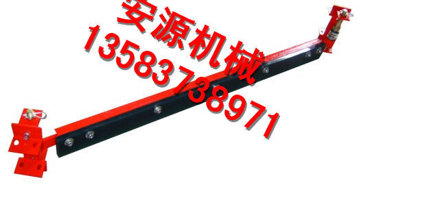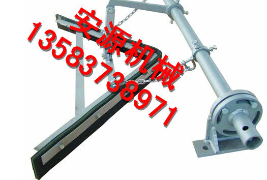 在正機(jī)安裝時(shí),首先確定好安裝位置,將前吊桿焊在清掃器三角板上,再將橫粱焊在機(jī)架上,前吊桿調(diào)正螺絲頂在橫梁上,調(diào)正刮板與膠帶距離,后吊環(huán)角鐵焊在機(jī)架槽綱下面,吊著清掃器尾部,自動(dòng)調(diào)正清掃器