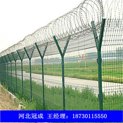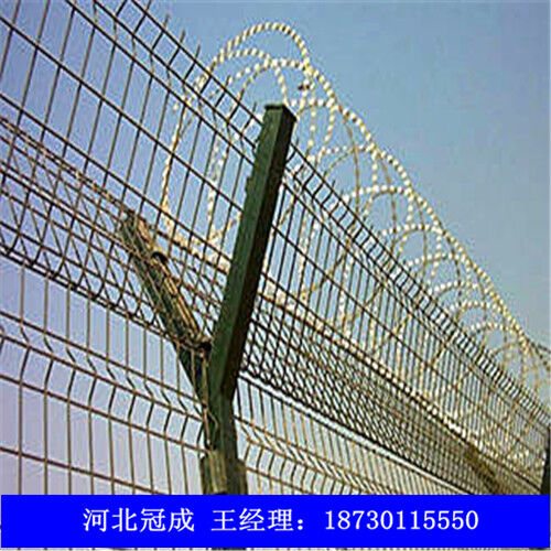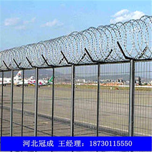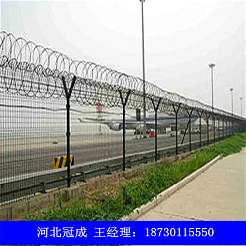 機(jī)場(chǎng)圍欄網(wǎng)因?yàn)榫哂邪踩愿?、防攀爬能力?span>,網(wǎng)片連接方式采用特制SBS緊扣件,有效防止人為的破壞性拆卸,橫向四道折彎加強(qiáng)筋,使網(wǎng)面強(qiáng)度明顯增加。該產(chǎn)品堅(jiān)固耐用、價(jià)格中等偏低,適合大面積采用。