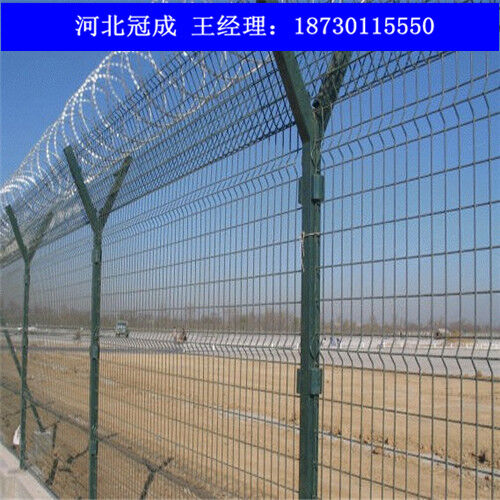 網(wǎng)片中帶有V型加強筋,可大大增強圍網(wǎng)的抗沖擊力。 立柱為60X60的矩形鋼,頂端焊有V型之架?;蛘卟捎?span>70mmX100mm的掛式連接立柱。產(chǎn)品均為熱鍍鋅后采用高質(zhì)量的聚酯粉末靜電噴涂,采用國際流行的RAL顏色。