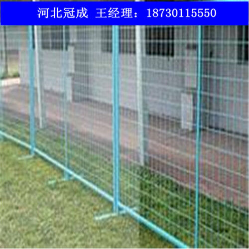 臨時護(hù)欄網(wǎng),又可以稱為移動圍欄,臨時隔離欄,移動式安全圍欄網(wǎng) 臨時護(hù)欄分類臨時護(hù)欄從工藝上來看可以分為兩種:1.焊接網(wǎng)臨時護(hù)欄;2.編織網(wǎng)臨時護(hù)欄。 1.焊接網(wǎng)臨時護(hù)欄網(wǎng) 主要規(guī)格如下 絲徑:3.6-6mm 孔徑:50X200mm 75X150mm 80X160mm 100X200mm等 網(wǎng)片高度:1.0-2.0m 網(wǎng)片寬度:2.0-3.0m 立柱:方形柱 圓形柱 桃形柱 新型防盜柱 表面處理:熱度鋅、 浸塑、 噴塑、 噴砂、 靜電噴涂等。 顏色:以綠色為主(黃色,藍(lán)色等) 以上規(guī)格,顏色等也可根據(jù)客戶需要加工定做?! ?span>2.編織網(wǎng)臨時護(hù)欄 主要規(guī)格如下 絲徑:1.5-4mm 孔徑:50X50mm 60X60mm 70X70mm 等 網(wǎng)片規(guī)格:1mX2m 1.5mX2m 2mX2.5m 2mx3m等。 立柱:方形柱 圓形柱 表面處理:PVC包塑 熱鍍鋅 顏色:主要以綠色,藍(lán)色為主?! ∫陨弦?guī)格可根據(jù)客戶需求加工定做?! ∨R時護(hù)欄網(wǎng)是適用臨時隔離,臨時隔斷,臨時圈圍,是靈活性極強(qiáng)的產(chǎn)品。 臨時護(hù)欄網(wǎng)主要采用可拆接構(gòu)件將護(hù)欄主片與底座或防護(hù)柱進(jìn)行標(biāo)準(zhǔn)連接,等特定需要的時候可輕松拆除,進(jìn)行移動安裝。