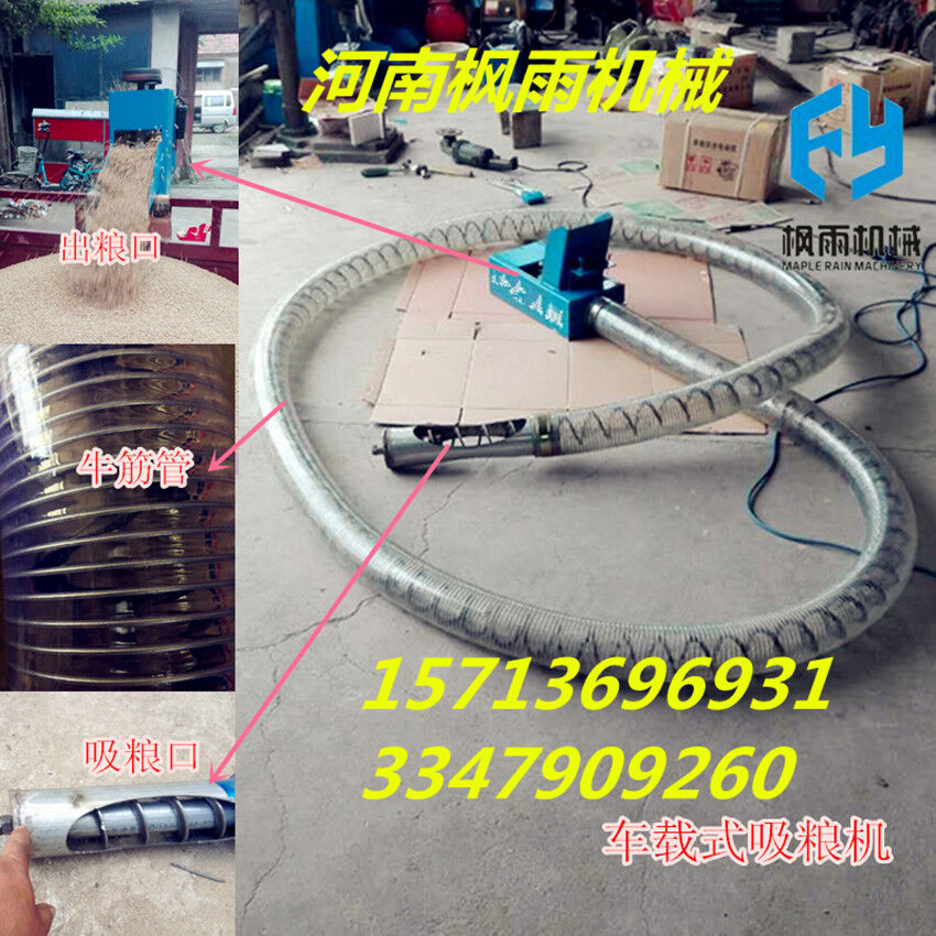 新型吸糧機(jī),新型軟管吸糧機(jī),在原有的基礎(chǔ)上改進(jìn)了螺旋片加厚,不易斷,機(jī)頭機(jī)尾采用噴塑工藝,電機(jī)改為滑板式工藝,拆卸方便,省時省工,輕松搞定,軟管采用耐寒管,握不斷,壽命長,機(jī)尾為錐形設(shè)計,插入糧堆更方便,功率采用3kw,更有效的輸送糧食