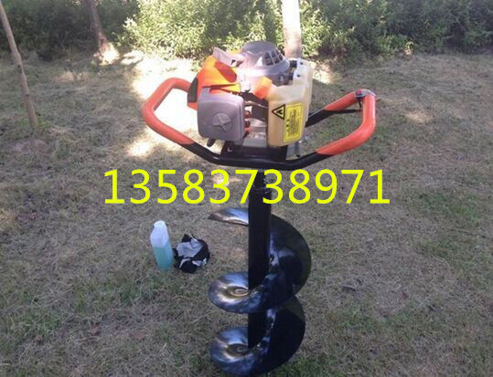 地鉆由小型通用汽油機(jī),齒輪箱及特殊設(shè)計的鉆具組成.適合在土地,凍土,冰層上打孔.廣泛用于園林,種植,植樹,物探,道路建設(shè)等領(lǐng)域. 2.鉆頭采用錳鋼合成更加的堅硬。對硬土質(zhì),超硬土質(zhì),粘土,凍土等都能工作。 3.地鉆可根據(jù)樹種,選配多種規(guī)格的鉆頭,以滿足用戶需要。 4.地鉆能夠讓人們從繁重的體力勞動解放出來,廣泛應(yīng)用于植樹造林,栽種果林、籬笆、及秋季給果樹施肥等。適合各種地形,效率高,便于攜帶及野外田地作業(yè)。 5.地鉆既可以單人操作,又可雙人操作,經(jīng)濟(jì)實用。 注意事項:1.使用正品2T(二沖程)FC級機(jī)油,嚴(yán)禁使用4T(四沖程)機(jī)油。 2.嚴(yán)禁使用純汽油。 3.嚴(yán)格按25比1的比例兌油. 4.新機(jī)器不可高速使用,請低速磨合3小時。 5.嚴(yán)禁在高速的時候突然關(guān)停發(fā)動機(jī),否則會使下次開機(jī)啟動困難。 6.感覺機(jī)器震動異常,請立即停機(jī)檢查,是否破損,松動,偏心。 7.嚴(yán)禁在有亂石堆的草地上使用。 8.鉆頭有嚴(yán)格的尺寸限制,嚴(yán)禁私自改裝或使用增大號鉆頭. 9.每工作一段時間清除火花塞、消音器積碳,清洗空氣濾清器,向齒輪箱加注黃油。 10.遇到問題自己無法解決的,不要私自拆裝。 11.機(jī)器長時間不用時,應(yīng)該將剩余的燃油倒出,然后發(fā)動機(jī)器將化油器內(nèi)的燃油全部燃燒干凈。 12.想讓機(jī)器運轉(zhuǎn)更穩(wěn)定,壽命更長請經(jīng)常保養(yǎng)。 安全事項: A.人身安全:嚴(yán)禁在室內(nèi)添加汽油,嚴(yán)防火災(zāi);機(jī)器運行時,嚴(yán)禁手腳靠近鉆頭;清理或檢查機(jī)器時必須停機(jī)。 B.機(jī)器安全:地鉆起動前必須清理草坪上的雜物,確保機(jī)器安全運轉(zhuǎn)。