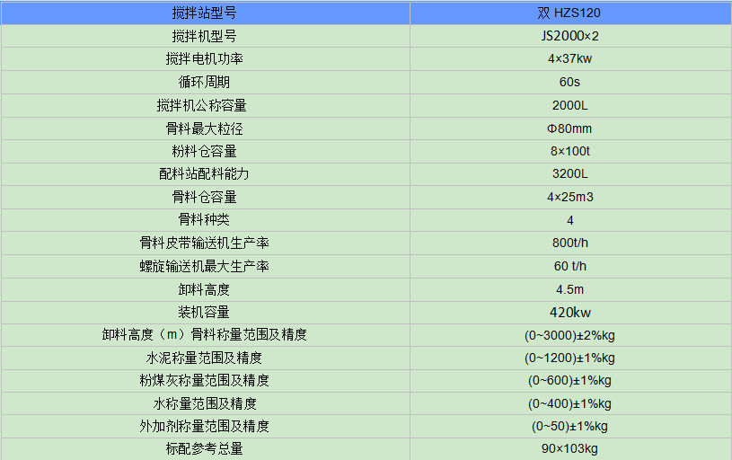 雙HZS120大型混凝土攪拌站技術(shù)參數(shù)
