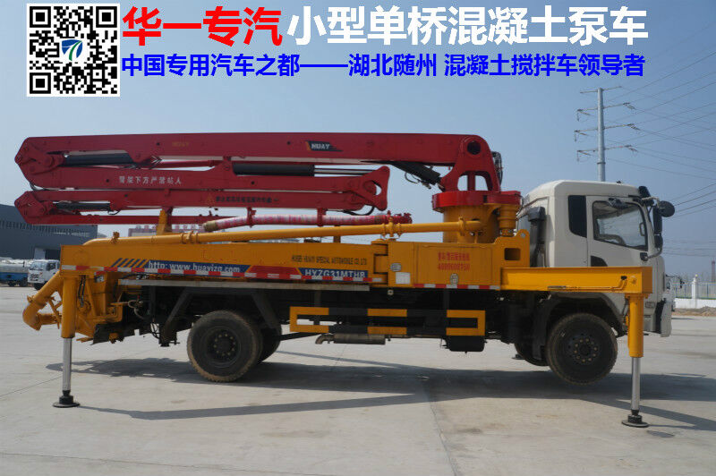 湖北華一專用汽車有限公司生產(chǎn)的小型泵車是國內(nèi)首創(chuàng)小型混凝土臂架泵車,是目前國內(nèi)體積小、一車兩用(高壓車載泵送、低壓泵送臂架布料)最具創(chuàng)意和經(jīng)濟效益的臂架泵車,以機械化作業(yè),代替勞動力(能替代40多個勞動力),填充農(nóng)、鄉(xiāng)、城、鎮(zhèn)建筑混凝土輸送的空白,適用于國家政策城鄉(xiāng)一體化建設(shè)不可缺少的專用車輛、具有靈活、方便、高效、經(jīng)濟、智能的優(yōu)點,小型混凝土臂架泵車在湖北具有代表性。