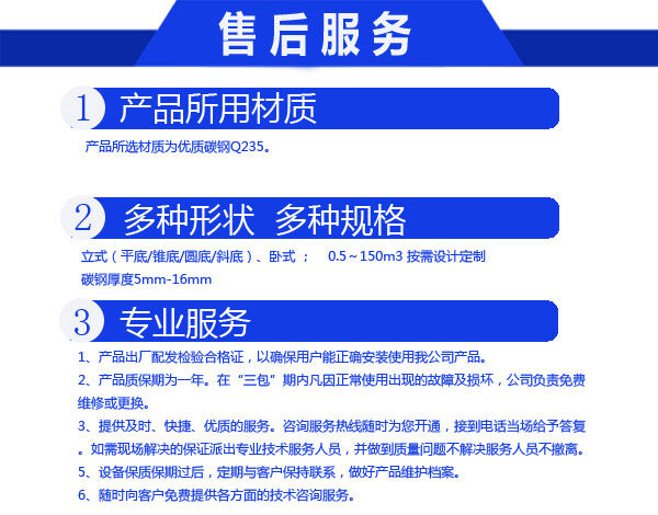 我們公司并可根據(jù)客戶要求制作來圖來料加工防腐儲(chǔ)罐。工程質(zhì)量達(dá)到經(jīng)濟(jì)、合理、可靠、可信和優(yōu)良的標(biāo)準(zhǔn)。讓您滿意是我們的追求。為您服務(wù)是我們的職責(zé)?!百|(zhì)量是企業(yè)生存的命脈 ;信譽(yù)是廠家發(fā)展的階梯?!?讓利客戶、規(guī)格生產(chǎn)、成本降低、統(tǒng)一銷售。歡迎廣大客戶來函、來電、來樣咨詢訂購,讓您買的放心用得安心,與您攜手共創(chuàng)輝煌。