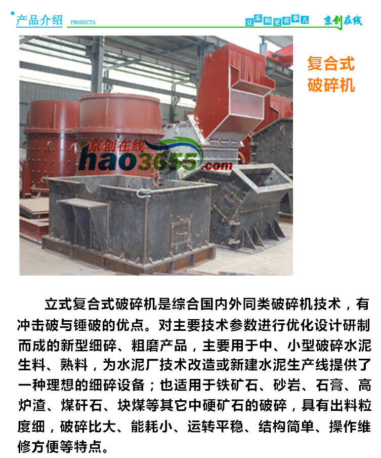 立式復合式破碎機1500簡稱為復合破,是破碎生產(chǎn)線和制砂生產(chǎn)線中常用設備之一。復合破碎機是一種無篩條、可調(diào)式細碎設備,可廣泛適用于水泥廠的生料、熟料細碎作業(yè),同時也可用于白云石、焦寶石、鉛鋅礦、蛇紋石、高爐渣、煤矸石、磷礦石等中等硬度物料的細碎作業(yè),特別適用于硬質石灰?guī)r、白云巖、花崗巖、玄武巖等人工造砂或高速公路路面石料的加工破碎。