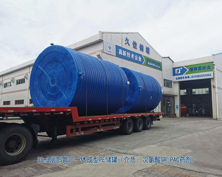 次氯酸鈉,化學(xué)式NaClO,是鈉的次氯酸鹽。又名漂白水,漂水。次氯酸鈉與二氧化碳反應(yīng)產(chǎn)生的次氯酸是漂白劑的有效成分,強(qiáng)氧化劑,用作漂白劑、氧化劑及水凈化劑;用于造紙、紡織、輕工業(yè)等,具有漂白、殺菌、消毒的作用。次氯酸鈉溶液是弱堿性的,不會對PE塑料罐有腐蝕;30立方次氯酸鈉儲罐 久塑牌PE儲罐廠家 水處理 水務(wù)漂白水儲罐材質(zhì)PE是聚乙烯塑料,常溫下耐酸堿性能很好,完全可以裝次氯酸鈉。