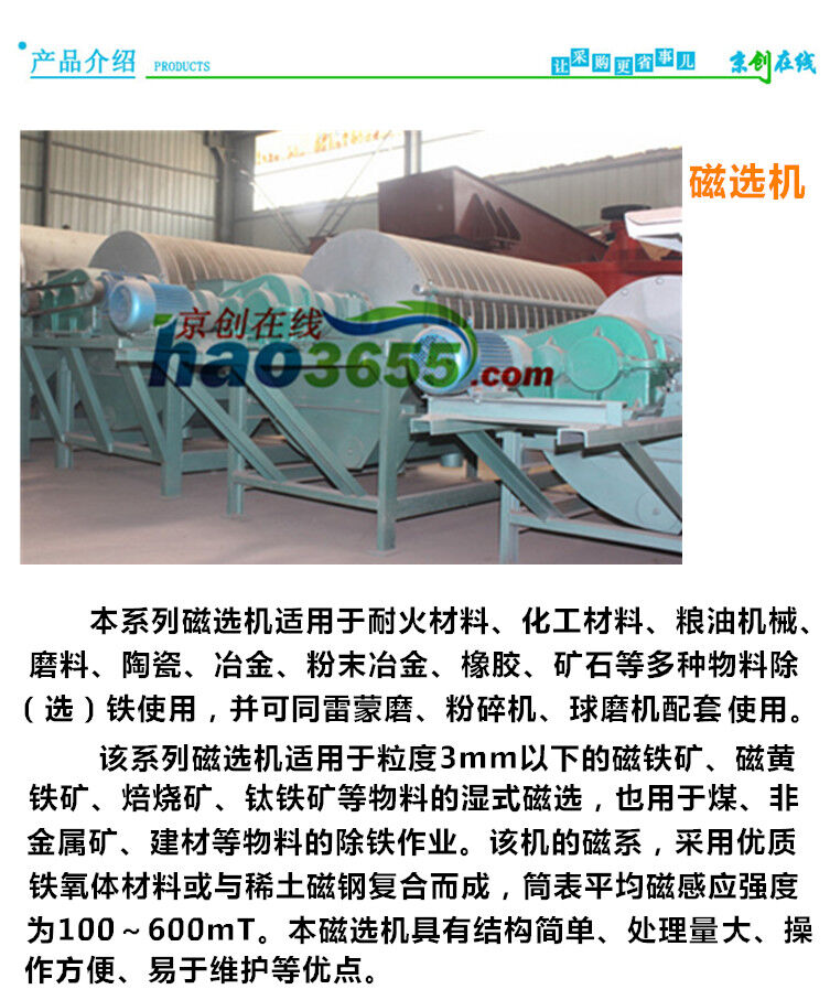 (5)、排出磁選機內(nèi)的磁性礦物。并周期地重復上述程序。磁選過程順序控制由順序控制器(見選礦設(shè)備順序控制器)實現(xiàn),根據(jù)工藝要求的控制順序預先編程,并存入順序控制器內(nèi)。