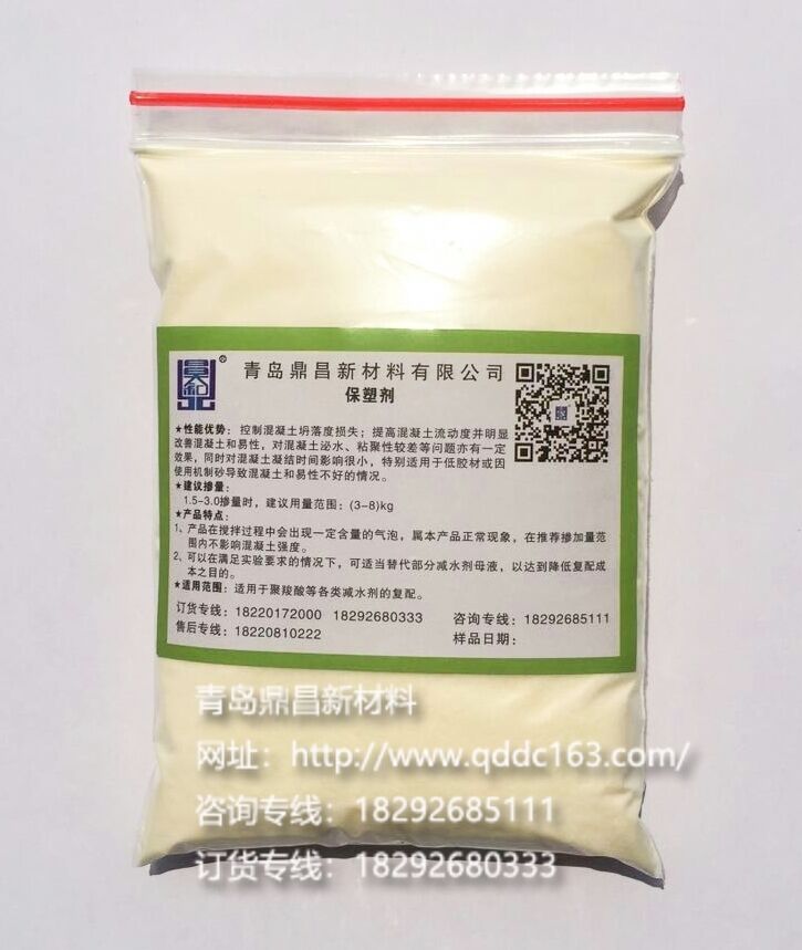 保塑劑是我公司自主研發(fā)生產(chǎn)的一種新型混凝土外加劑,外觀為淡黃色粉末。本產(chǎn)品具有兩親性的分子結(jié)構(gòu),在強堿性的條件下,可以有效的降低水的表面張力和表面自由能,具有很強的分散效果。本產(chǎn)品對鋼筋無銹蝕作用,可廣泛應(yīng)用于建筑、道路、橋梁、水工和地下工程等各類泵送施工的混凝土。xhudli$&159*