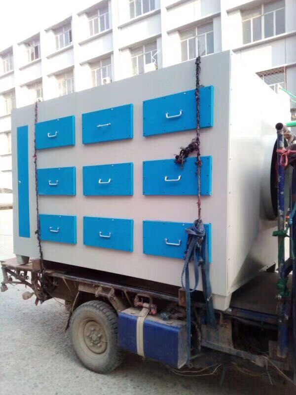 當(dāng)有機廢氣氣體由風(fēng)機提供動力,正壓或負(fù)壓進入塔體,由于活性炭固體表面上存在著未平衡和未飽和的分子引力或化學(xué)健力,因此當(dāng)此固體表面與氣體接觸時,就能吸引氣體分子,使其濃聚并保持在固體表面,污染物質(zhì)及氣味從而被吸附,廢氣經(jīng)活性炭吸附塔后,進入設(shè)備排塵系統(tǒng),凈化氣體高空達標(biāo)排放。