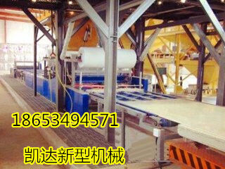 勻質(zhì)板設(shè)備產(chǎn)品在連續(xù)生產(chǎn)線連續(xù)同步完成發(fā)泡、固化、覆膜過程。面層軋壓設(shè)備用于將面層材料軋壓成設(shè)計所需要的花紋或圖形;反應(yīng)灌注機用于a料、b料按工藝要求的比例計量混合;移動澆注機用于將混合的ab料及泡沫以往復(fù)移動的方式覆蓋在下層面材上;層壓機上下各一臺,用于原料在上下層移動鏈板間固化、定型;熱風(fēng)循環(huán)裝置用于層壓機內(nèi)部的加溫;貼側(cè)邊紙和側(cè)邊輸送機用于板材測邊擋料,修邊機用于改性eps防火保溫板板兩側(cè)修邊;自動跟蹤機用于將板材切斷成定長;生產(chǎn)方式為連續(xù)不間斷,生產(chǎn)效率高,產(chǎn)品質(zhì)量穩(wěn)定,板材密度均一。