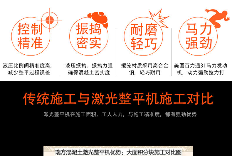 奧力德激光整平機(jī)是根據(jù)現(xiàn)代工業(yè)廠房、大型商場、 及其他大面積水泥混凝土地面等對地面質(zhì)量如 、平整度、水平度等越來越高的需求而研制的。使用精密激光整平機(jī)鋪?zhàn)⒄降乃嗷炷恋孛?/span>,較按常規(guī)方法所鋪?zhàn)⒌牡孛尜|(zhì)量要好得多——地面平整度及水平度提高3倍以上,密實(shí)度及強(qiáng)度提高20%以上。同時(shí)還能夠提高工效超過50% , 并節(jié)省約35%的人工。此外,它能容易地鋪?zhàn)⒏邚?qiáng) 、低坍落度混凝土和纖維泥凝土。其激光系統(tǒng)配備多種自動控制元件,以每秒10次的 實(shí)時(shí)監(jiān)測整平頭的標(biāo)高,確保鋪?zhàn)⒌牡孛嫫秸群退蕉鹊玫接行У目刂?。同時(shí),其強(qiáng)力振動器振動頻率達(dá)4000次/分鐘,確保混凝土振搗密實(shí),使整個(gè)鋪?zhàn)⒌幕炷粱w均質(zhì)、致密