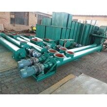 螺旋輸送機(jī)螺旋面的形式有實(shí)體螺旋(S制法)和帶式螺旋(D制法)兩種。各螺旋軸之間采用法蘭式聯(lián)接, 保證了聯(lián)接軸的互換性,便于維修。 螺旋輸送機(jī)機(jī)蓋為瓦片式并用蓋扣夾緊在機(jī)殼上,若需改進(jìn)密封性能,用戶可自行在機(jī)蓋與機(jī)殼間加防水粗帆布。 螺旋輸送機(jī)進(jìn),出料裝置有進(jìn)料口,方型出料口,手推式出料口,齒條式出料口四種,由用戶在使用現(xiàn)場在機(jī)體上開口焊接。布置螺旋輸送機(jī)進(jìn),出料口位置時(shí)應(yīng)注意保證料口至端部的距離,同時(shí)避免料口與吊軸承加油杯,機(jī)殼聯(lián)接法蘭,底座等相碰。