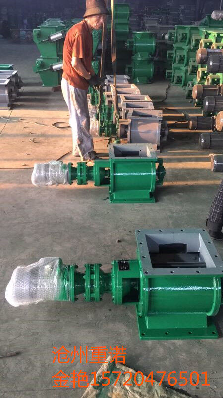 工作原理:星型卸料器工作時,粉塵靠重力落入,充滿上面和側面的星形葉片空格。葉片轉子由電動機通過減速機轉動軸帶動,葉輪轉到下部粉塵靠自重卸下。這種卸塵器一般都安裝在除塵器灰斗下部,為保證連接處的嚴密不漏風,在回轉卸料器的上部應經(jīng)常保持(儲存)一定高度的粉塵。因為葉輪轉動時,卸完粉塵后葉輪轉上的那一面經(jīng)常是沒有粉塵的,所以容易使空氣漏入。為了保持一定高度的灰柱,而且不致卸空,*在灰斗內裝設料位信號設施,并與卸塵閥的電動機建立連鎖。