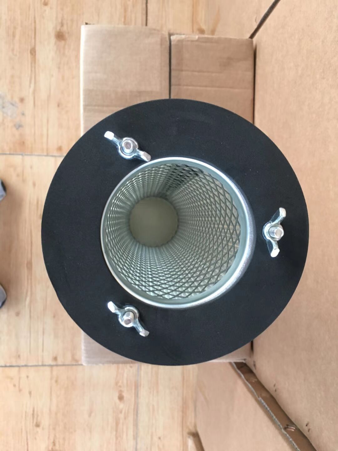 8.濾筒一端通一端是封底(底部螺絲減縮孔為14-20mm),另一種兩端通孔,可采用橫裝,斜裝,下裝,旋裝,側裝,上裝,吊裝等安裝方式,并采用氯丁彈性密封橡膠墊密封,防止灰塵滲漏。