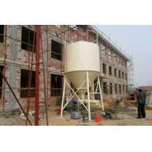 干粉砂漿儲料罐作為一個干粉砂漿的載體存放在施工工地,散裝干粉砂漿通過砂漿運輸車運輸?shù)焦さ兀?jīng)過氣力將干粉砂漿輸送到儲料罐中,使用時通過下端掛接的連續(xù)式攪拌機進行攪拌即可。