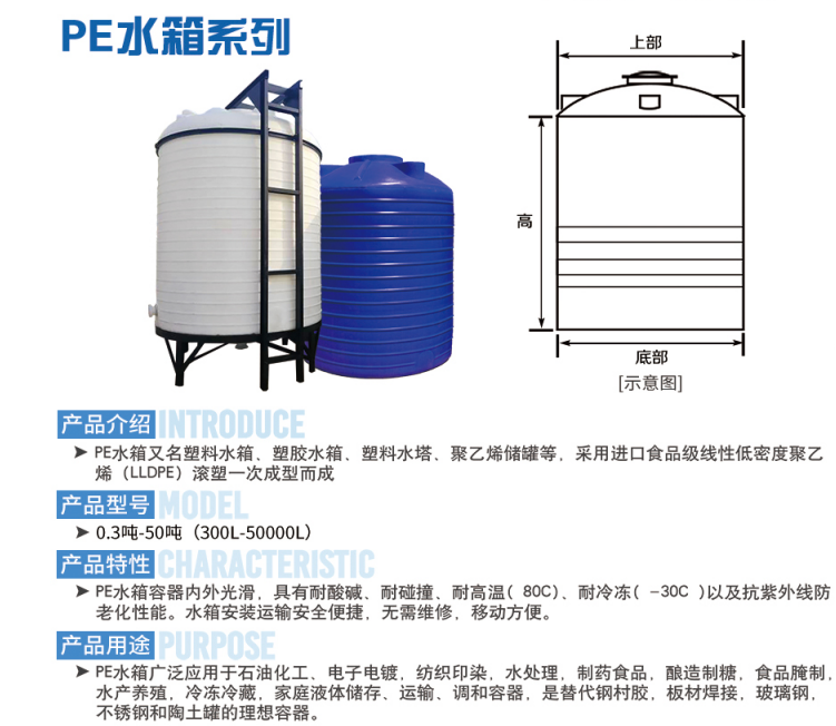 2.工藝:采用滾塑一次成型,無縫無焊接。
