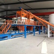 混合好的干粉砂漿由提升機(jī)提升到砂漿混合機(jī)頂部的粉料和水配料秤,按配方配好砂漿和水,進(jìn)入混合機(jī)混合均勻。
