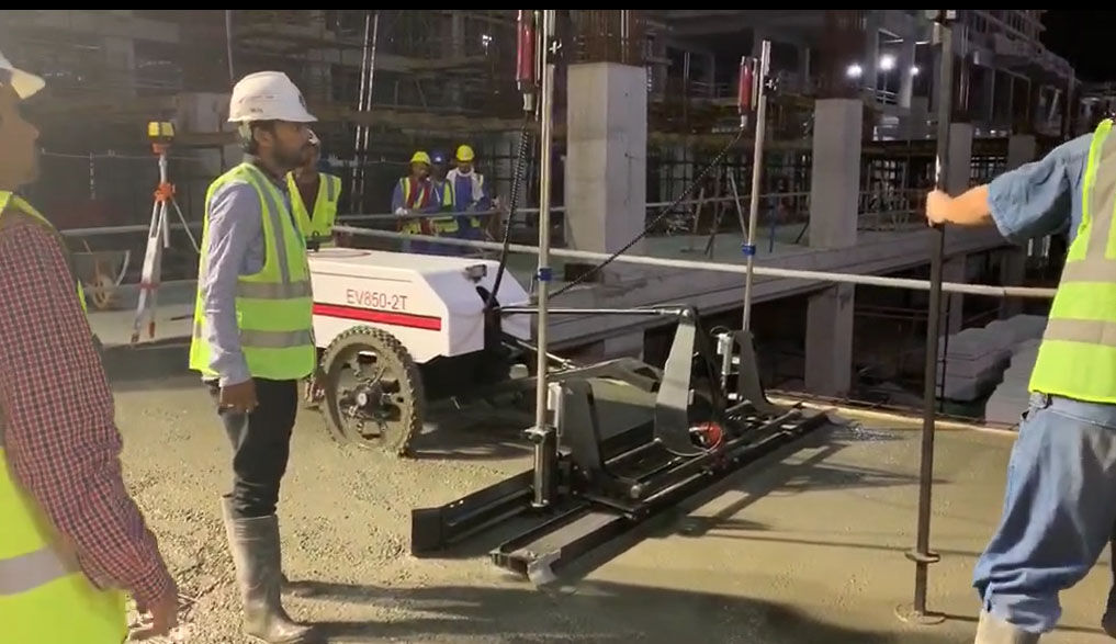 在對砼進行整平時,混凝土激光整平機始終是勻速行駛的施工狀態(tài),以每分鐘4000次的高頻振動器,讓整平頭振動板產生均勻的高頻振搗,使得混凝土地面更密實均勻。