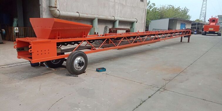 B)裝滿混凝土的攪拌車開到上料膠帶輸送機(jī)尾部,將出料口對準(zhǔn)上料膠帶輸送機(jī)進(jìn)料口,準(zhǔn)備給料。