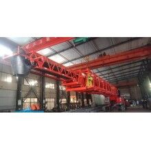 A)履帶式布料機(jī)臂架全伸,空攪拌車開到布料機(jī)出口處準(zhǔn)備接料。