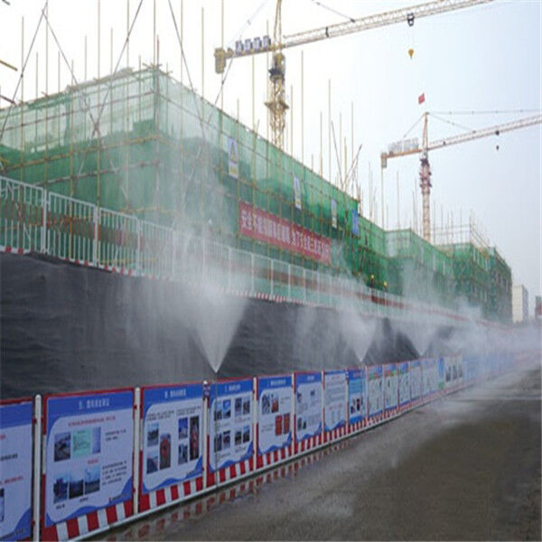 圍擋噴淋工藝原理:噴淋系統(tǒng)包括吸附于塔式起重機塔身的橫向管道、吸附于起重臂上的水平供水管、自來水系統(tǒng)、掌控配電箱、管件、噴嘴等,自來水補足水源,通過立管轉(zhuǎn)入水平管高壓供水,由噴嘴向上傾倒霧狀水,建筑工地的粉塵為在空氣中浮游的液體微粒,高壓噴霧降塵是一種效果理想、成本較便宜的降塵方式,系統(tǒng)工作介質(zhì)是水,在系統(tǒng)運營過程中,液態(tài)水從常壓狀態(tài),經(jīng)冷卻管路至霧化燃燒室,將液態(tài)水霧化,水霧運動與塵埃粒子產(chǎn)生慣性撞擊、重力下陷、截擊捕塵與蔓延捕集結(jié)合超過降塵目的。