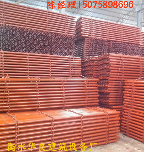 河北衡水華良建筑器材聯(lián)系電話:150-7589-8696 ,輪扣腳手架、碗扣腳手架、快拆式腳手架、承插式新型腳手架、直插式腳手架、鋼管腳手架、建筑腳手架,新型建筑支撐,腳手架,模板支撐,新型模板支撐, 新型建筑支撐。這種新型材料的特點是:耐腐蝕,彈性大,堅固不變形。易搭拆腳手架,施工速度快的腳手架。 每根支撐桿可以支撐3-4噸左右,兩根主龍脊之間可以承重2-2.5噸的重量,每根副龍脊可以承重1噸?,F(xiàn)在工地現(xiàn)澆水泥一般厚度也就是10-15厘米,同等面積重量最多100-150公斤,所以這個支撐力度一般高層建筑完全夠用。