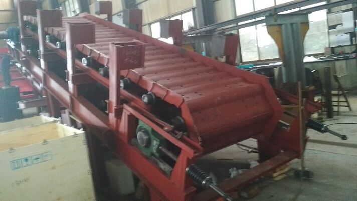 2、輸送槽板: 整個(gè)槽板圍成一個(gè)相對(duì)封閉的箱體,以保證上部來(lái)料能夠有效進(jìn)入板鏈上部,便于物料自開(kāi)口處由刮板輸送至下一級(jí)輸送系統(tǒng),同時(shí)保證不使物料散落。