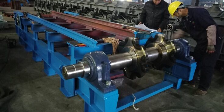 頭輪組裝有兩件主動(dòng)鏈輪,與尾輪組相呼應(yīng),頭輪組做為主動(dòng)輪組, 尾輪組為從動(dòng)輪組。當(dāng)傳動(dòng)機(jī)構(gòu)帶動(dòng)頭輪轉(zhuǎn)動(dòng)時(shí),帶動(dòng)輸送鏈條、刮板輸 送裝置運(yùn)轉(zhuǎn),完成輸送料過(guò)程。