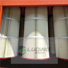 濾筒除塵器的氣流分布很重要,須考慮如何避免設(shè)備進(jìn)口處由于風(fēng)速較高造成對(duì)濾料的高磨損區(qū)域。氣流分布板用于濾筒式除塵器有獨(dú)特要求,氣流分布須十分穩(wěn)定和均勻。才有利于氣流的上升和粉塵的下降,氣流分布板開孔率35。根據(jù)計(jì)算,阻力系數(shù)<2,由此可見在氣流速度<0.8m/s的情況下,多孔氣流分布板可以滿足濾筒式除塵器的要求。