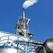 脫硫脫硝凈化塔采用慣性碰撞、凝聚、離心力等原理,在引風(fēng)機(jī)的動(dòng)力作用下,煙氣從一定高度下落,高速?zèng)_擊液面,形成水霧,大部分顆粒沉入水中,在除塵器分流器的作用下霧化氣流急速上行,液滴進(jìn)一步碰撞、凝聚、形成水灰混合物,水灰混合物通過(guò)旋風(fēng)葉輪而汽水分離,從而完全達(dá)到其脫硫、除塵、脫水的效果。