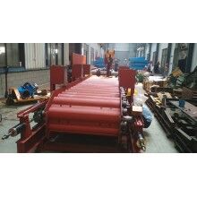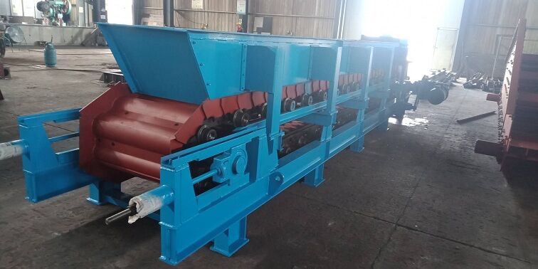 該裝置的安裝要點(diǎn)在于對(duì)鋼絲繩仲人下料口深度和彈簧拉力的調(diào)整,要以不斷料不溢料為準(zhǔn)。鋼圓盤離給料機(jī)過近,稍微有點(diǎn)料層厚度板喂機(jī)就會(huì)停止,影響正常下料;如果過高又起不到防溢料的作用。彈簧拉力過大過小也是如此。因此,調(diào)節(jié)時(shí)要反復(fù)耐心地進(jìn)行,相互配合,才能達(dá)到預(yù)期效果。