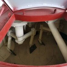卸料門的開關(guān)采用帶緩沖裝置的工程液壓油缸,保證了開關(guān)門的平穩(wěn)性及可靠性。