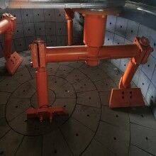 卸料門的開關采用帶緩沖裝置的工程液壓油缸,保證了開關門的平穩(wěn)性及可靠性。