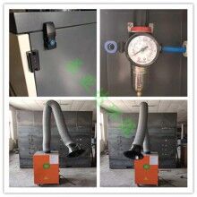 焊煙凈化器通過(guò)風(fēng)機(jī)引力作用,焊煙廢氣經(jīng)過(guò)萬(wàn)向柔性吸氣臂設(shè)備向吸塵罩吸入焊煙凈化器進(jìn)風(fēng)口,進(jìn)風(fēng)口設(shè)有阻火器,火花經(jīng)過(guò)阻火器被阻留,煙塵氣體進(jìn)入沉降室,利用重力與上行氣流,先將顆粒廢氣直接將至灰斗,微型顆粒煙塵被濾芯捕集在外表面,潔凈氣體經(jīng)濾芯過(guò)濾凈化后,由濾芯流入潔凈室,潔凈空氣又經(jīng)過(guò)活性炭過(guò)濾器吸附進(jìn)步凈化后經(jīng)風(fēng)口達(dá)標(biāo)排出。