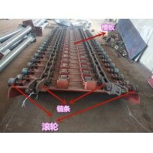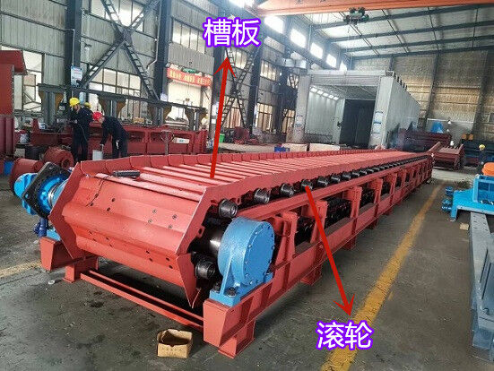 板式給料機(jī)運(yùn)行部件由牽引鏈條,承載構(gòu)件行走滾輪和輸送槽板等組成。