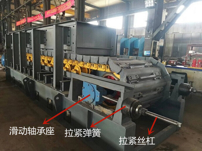 主要由從動(dòng)軸、兩個(gè)從動(dòng)鏈輪、軸承、軸承座,拉緊彈簧及拉緊螺桿等組成。鏈輪是通過漲緊套固定在軸上,軸的兩端裝有雙列調(diào)心滾子軸承和軸承座。軸承座裝在機(jī)架兩側(cè),并在滑軌之間前后滑動(dòng)。