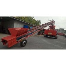 新型履帶移動式堆料機(jī),以皮帶輸送機(jī)的物料輸送功能為主體,皮帶輸送機(jī)的兩端分別設(shè)置有傳統(tǒng)的入料裝置和出料裝置。其特征在于,還包括履帶底盤和行走輪,皮帶輸送機(jī)的一端通過轉(zhuǎn)盤機(jī)構(gòu)與履帶底盤連接,皮帶輸送機(jī)的另一端通過鉸接機(jī)構(gòu)與行走輪連接,整個(gè)裝置由液壓馬達(dá)驅(qū)動履帶行走,動力可采用柴油發(fā)動機(jī)或外接電源。