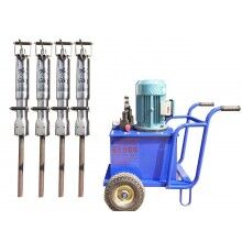 發(fā)潤牌劈裂機的速度是破碎錘的速度的7~8倍,大大縮短了工期。這個機器使用很簡單,一個工人就能完成全部操作,其結構就是一個高壓泵站加上輸油管連接的劈裂槍,使用的時候先在需要分裂的巖石上打一個50到100公分深的孔,然后插入劈裂槍,啟動機器,大約30到60秒,石塊即被裂開一條100公分左右長度,1.5公分寬度的裂縫。機器原理就是利用劈裂槍中間的楔塊伸縮,推動包圍楔塊的兩片劈塊往周圍張開,從而由內(nèi)部脹開巖石。