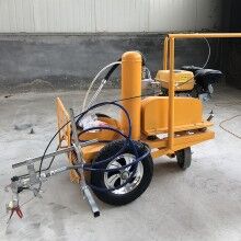 冷噴(冷漆)劃線機(jī):冷噴劃線是一種歷史最為悠久的一種常規(guī)型劃線,該類劃線一般由一臺(tái)常溫劃線機(jī)即可完成施工。冷噴劃線機(jī)按照其劃線方式不同可分為高壓無(wú)氣型、低壓空氣輔助型等兩個(gè)類型;按照其所使適用涂料的種類不同又分為常溫熔劑型、常溫水性及加熱溶劑型三個(gè)類型(廣義的常溫標(biāo)線機(jī)械也包括雙組份型,尤其是雙組份噴涂型,它是一種兼具常規(guī)常溫涂料及雙組份涂料噴涂功能的廣譜型劃線機(jī)),如下圖手推式高壓無(wú)氣冷噴劃線機(jī)
